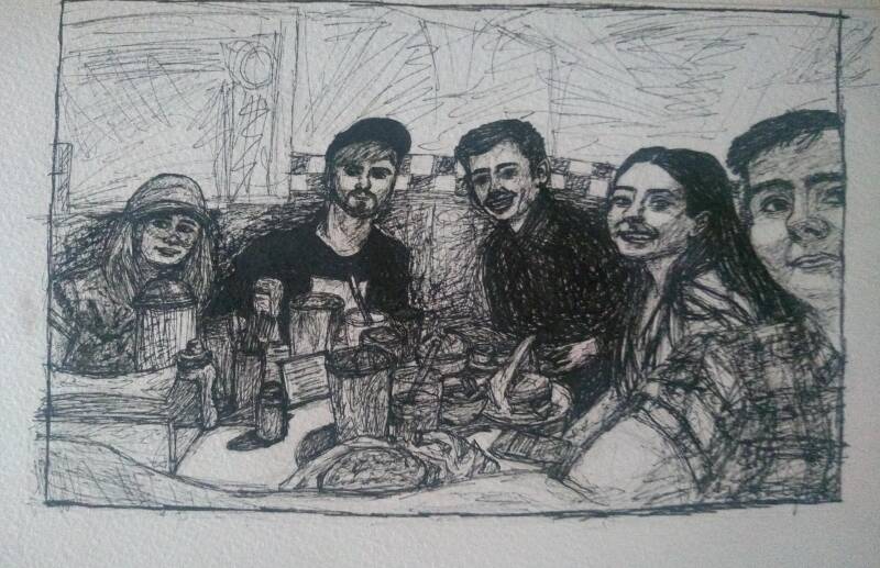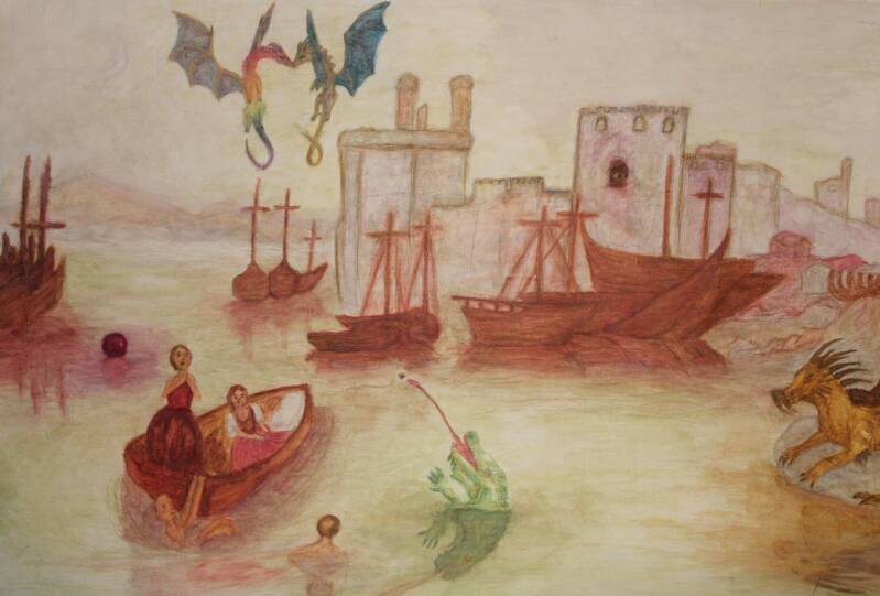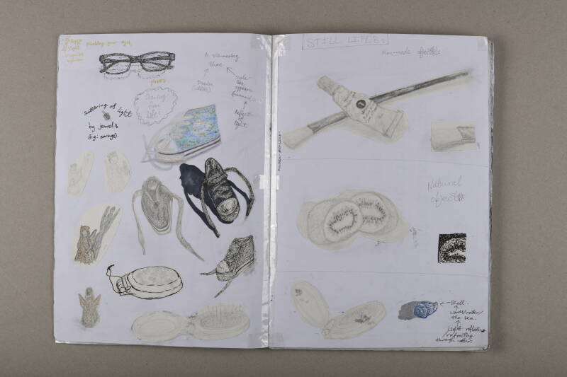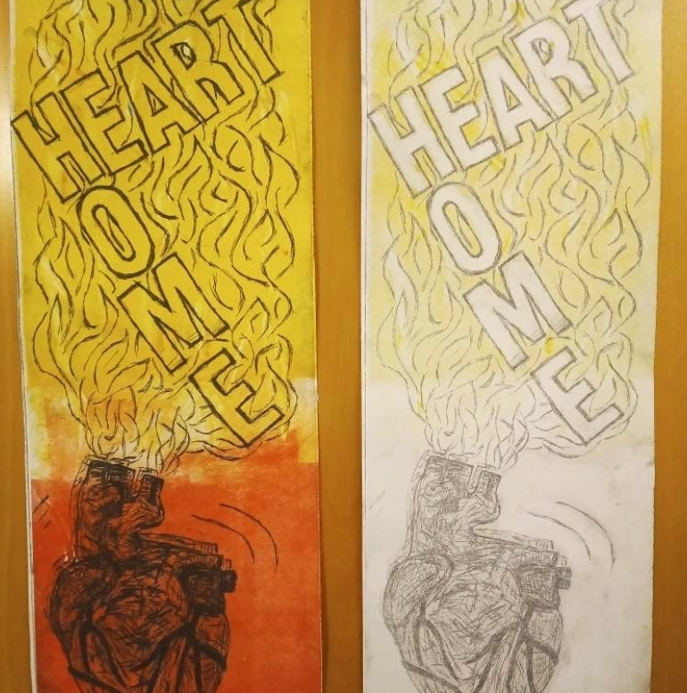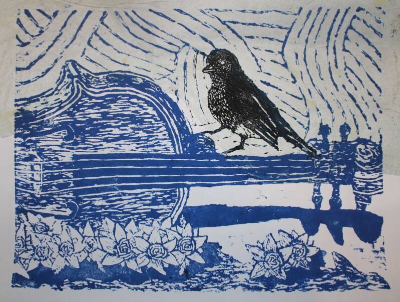 Media used: Pen, charcoal, chalk pastels, graphite pencil, coloured pencils, watercolour pencils, arcylic paints, lino printing, chine-collé...