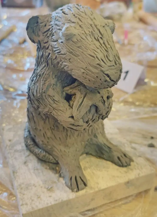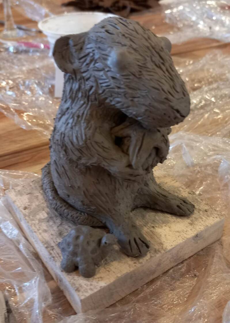 Rat ag coinneáil sútha talún dealbh i gcré cloiche aerthriomaithe.